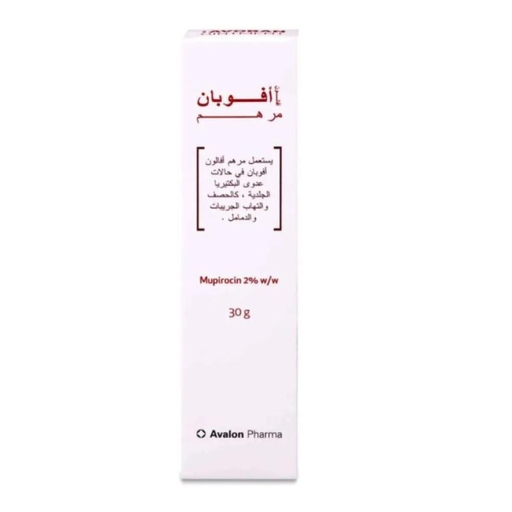 - مرهم أفوبان هو دواء موضعي مضاد للباكتيريا , فعال ضد الكائنات التي تسبب أغلب حالات العدوى الجلدية مثل الحصف و التهاب الجريبات و الدمامل