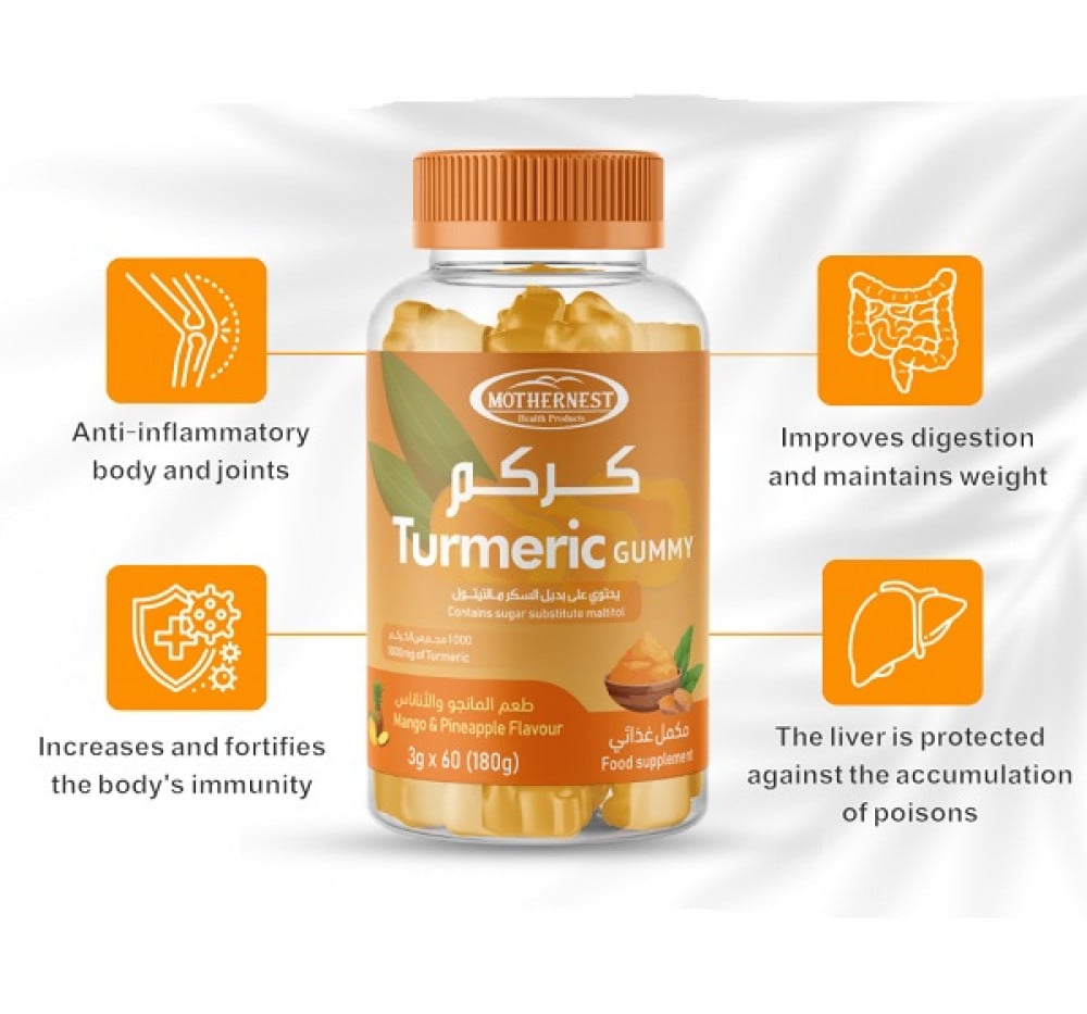 - مذرنيست كركم مزيج فريد للجمع بين فوائد الكركم وخصائصه الطبية ومتعة الحلوى بدون اضافة سكر او الوان صناعية او مواد حافظة